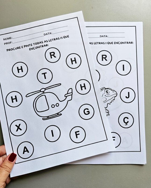 A criança deverá identificar a letra solicitada, pintar apenas as correspondentes e ignorar as demais, desenvolvendo foco e segurança no reconhecimento das letras.