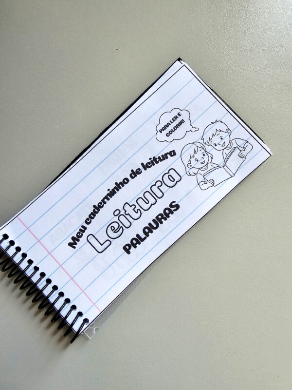 Caderninho com 18 cards de palavras, acompanhado de ilustrações para colorir, ideal para estimular o reconhecimento das palavras e a fluência leitora.
