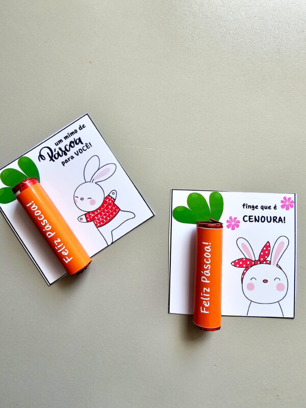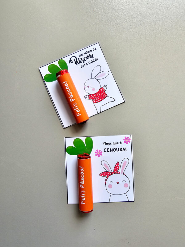 Cartão temático onde o doce “vira” uma cenoura de forma lúdica e criativa.