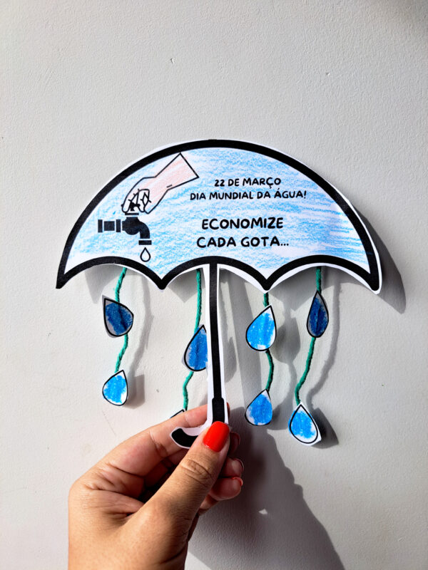 A atividade Dia da Água – Guarda-Chuva Interativo foi desenvolvida para trabalhar a conscientização ambiental de forma lúdica, prática e significativa com as crianças.